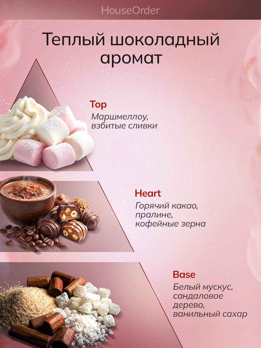 - Ноты сердца: горячий какао, пралине, кофейные зерна