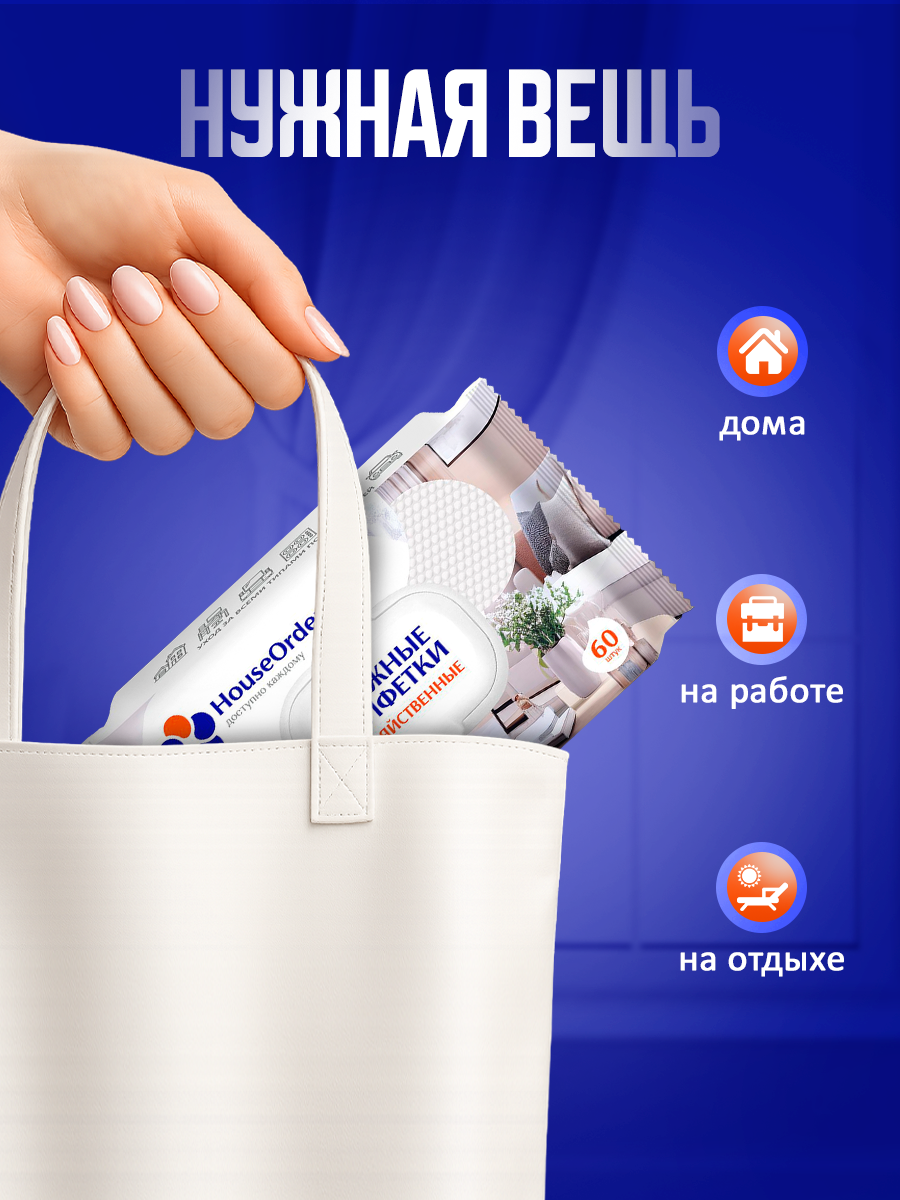 Выбирайте влажные салфетки HouseOrder — простой способ поддерживать идеальную чистоту каждый день.
