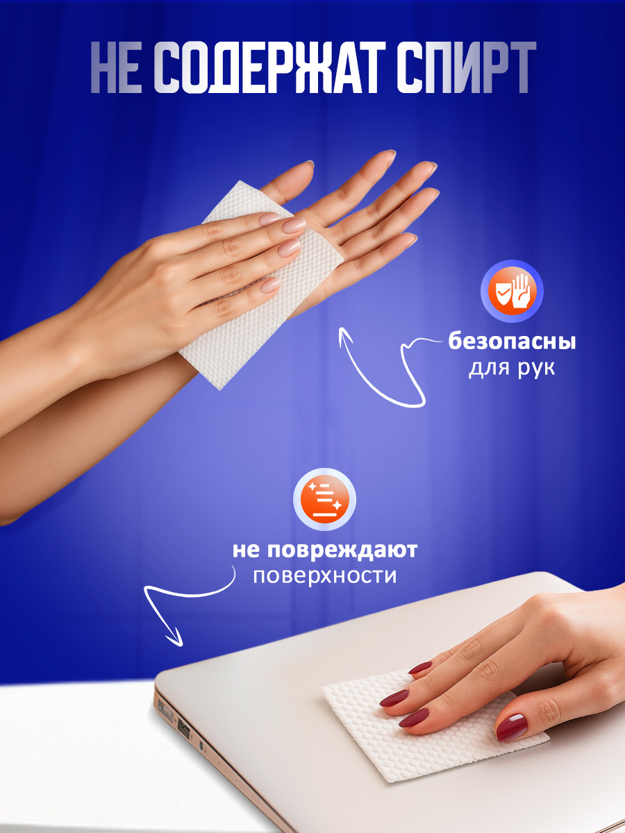 Салфетки пропитаны специальным очищающим составом, который не требует дополнительного смывания. Благодаря прочной текстуре они не рвутся во время использования и обеспечивают качественную уборку даже в труднодоступных местах.