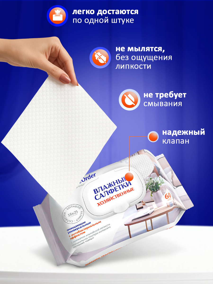 Выбирайте влажные салфетки HouseOrder — простой способ поддерживать идеальную чистоту каждый день.