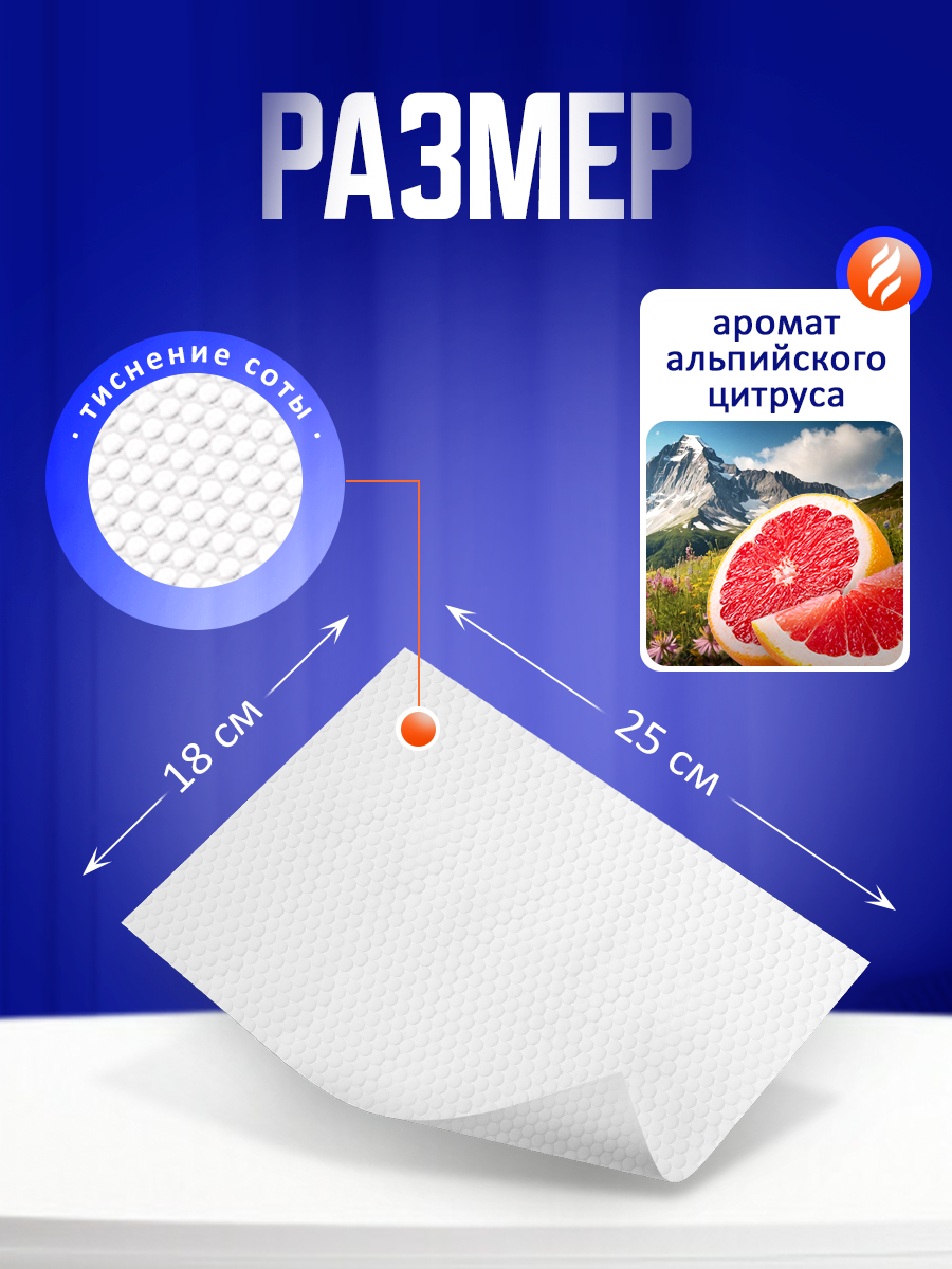 Салфетки пропитаны специальным очищающим составом, который не требует дополнительного смывания. Благодаря прочной текстуре они не рвутся во время использования и обеспечивают качественную уборку даже в труднодоступных местах.